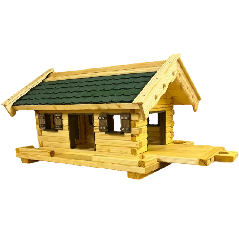 Das Dach kann wahlweise mit robusten Bitumenschindeln (in Grau, Rot oder Grün) oder dekorativen Holzschindeln gedeckt werden. So ist das Haus zuverlässig vor Regen, Schnee und Wind geschützt. Gefertigt aus massivem Fichten- und Kiefernholz, verleimt mit D4-Holzleim und verschraubt mit rostfreien Schrauben, ist das wetterfeste Vogelhaus stabil und auf viele Jahre Nutzung im Freien ausgelegt. Optional sorgt eine natürliche Leinöl-Imprägnierung für zusätzlichen Schutz.