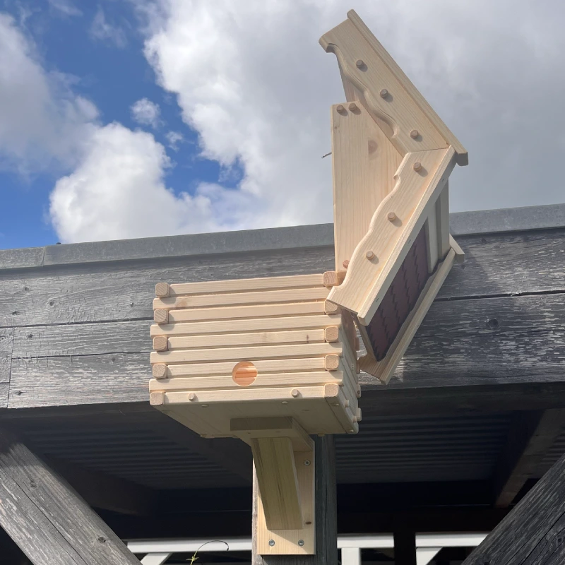 - Wetterschutz: Überstehendes Dach; optional Leinöl-Imprägnierung gegen Nässe und Insekten.